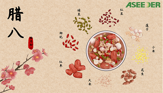 臘八節在我國很多地方有喝臘八粥的習俗,盡管臘八粥的品種、熬制方法不一樣,但主要配料都是以臘八里的字,湊夠米、豆、干果、花生、核桃仁、蓮子、桂圓、肉丁8樣食用材料,甚至更多,各地風味獨特。